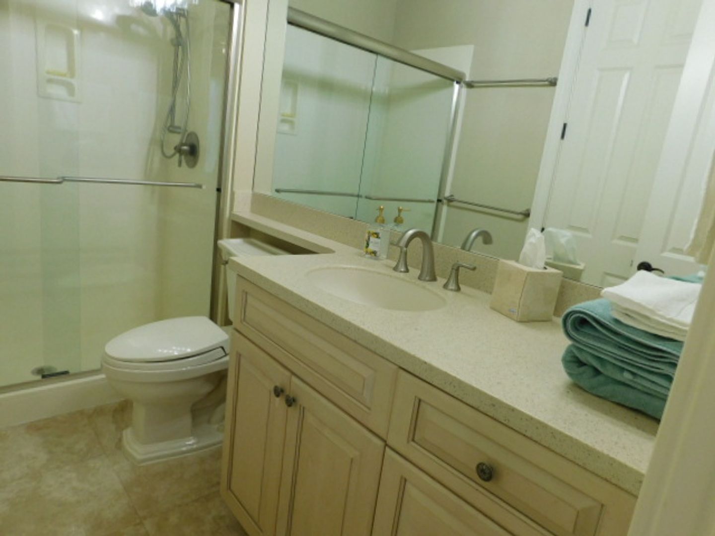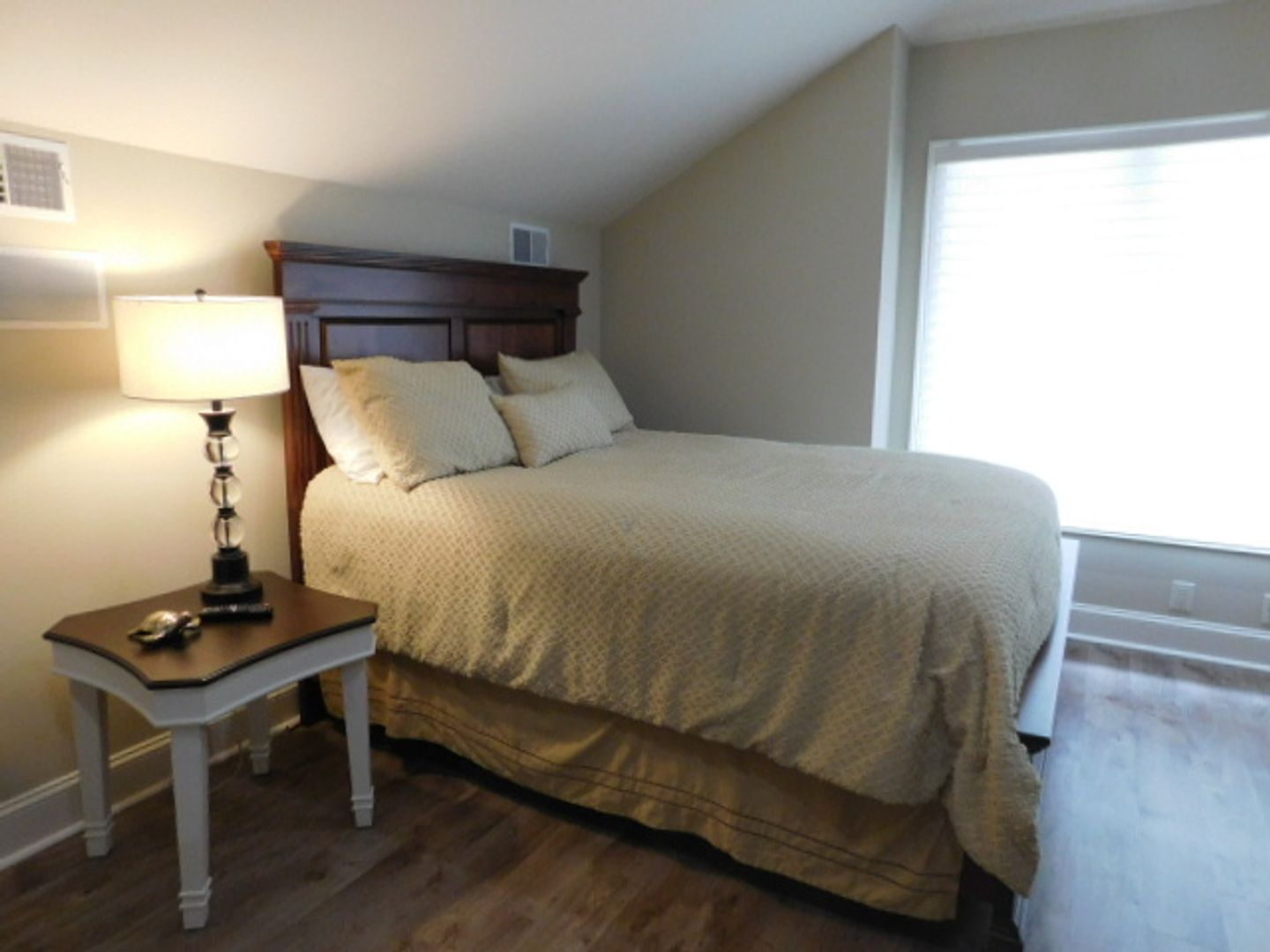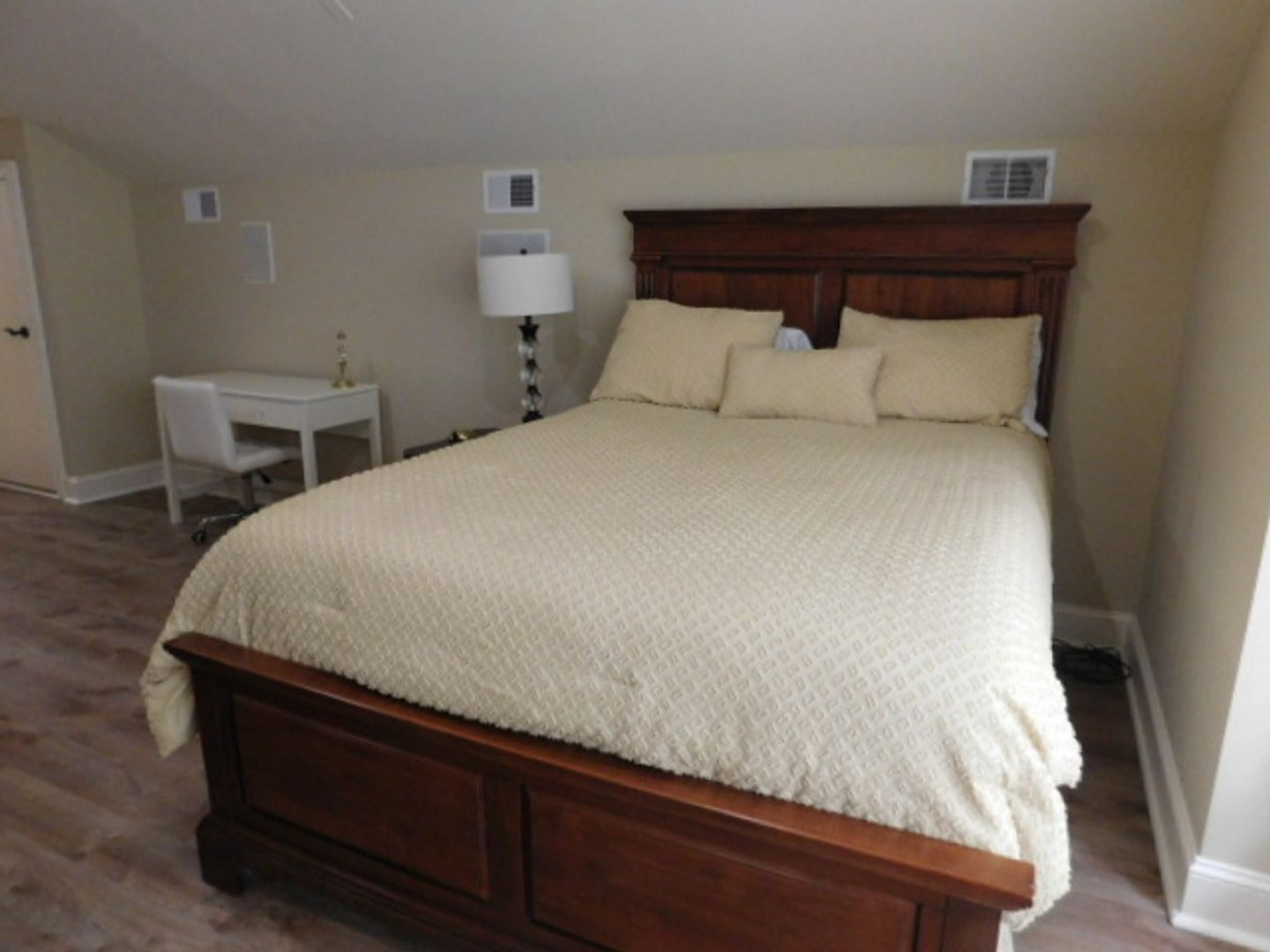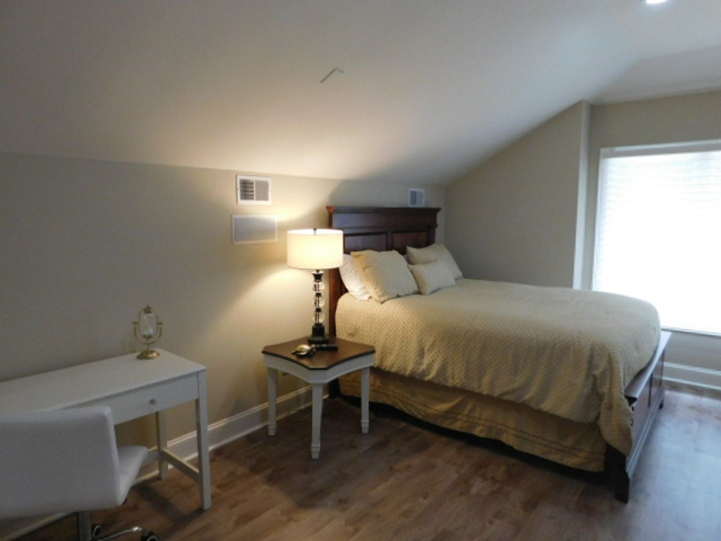 The home has travertine floors and LVP flooring throughout. The welcome area has a beamed coffered ceiling where you can sit, enjoy your coffee or cocktail. The spacious kitchen has granite countertops, filtered water fountain, GE Café wall oven with a built in microwave oven, and is fully equipped with nice cookware and everyday dinner ware. The living room area has a 75" television screen, built in cabinetry and surround sound speakers. The dining room area has a table that seats 6-8 people and wall windows. The primary bedroom has a 65" TV, large walk-in closet, soaking tub, easy walk-in shower with two heads and jets. The two bedrooms have their own hallway and are spacious with closets and large windows. All the bedrooms have ceiling fans and soft shades. A lovely wrought iron stairwell takes you up to Bedroom Suite #4 that feels like your own villa. It has an office with built-in cabinetry a beverage center, bedroom with Queen bed , large sectional sofa with TV, and a full bath, with tub & shower. The 2-car garage connects to the laundry room that features a large front loader washer & dryer, and built-ins with an area for folding. Lots of storage, closets, and rooms for your extra items. Central Vacuum throughout the home. Small, private back patio for entertaining. Pets considered. Landscaping, pest control and HVAC services included. No smoking. $5500.00 per month!