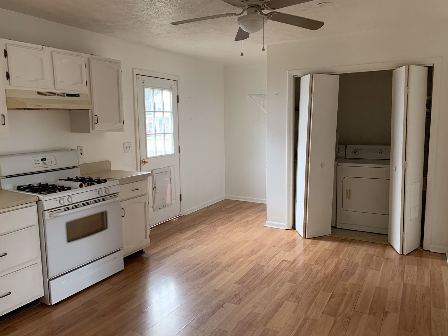 Nice home; 3BR, 1 Ba home on a corner lot with laminate floors throughout. Washer and dryer included.