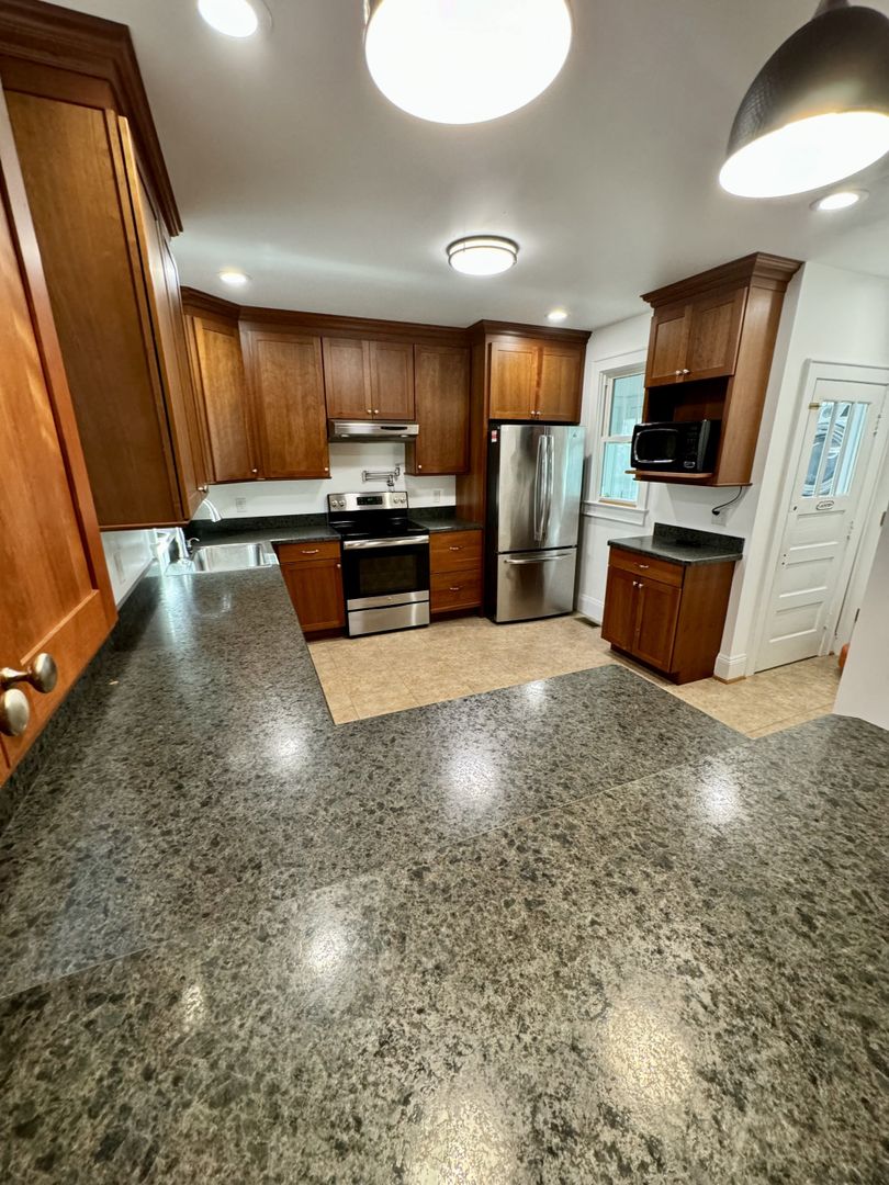 Totally updated home in 2018. Amazing eat-in kitchen with plenty of cabinets and a pot filler over the stove. Large great room. 2 first floor bedrooms, master plus additional bedroom and bonus room upstairs. Hardwood floors. 2 1/2 bathrooms. Lots of closet space. Laundry room. Security flood lights all around. Hot water circulating pump for fast hot water. Even a rare find...a dry basement. Detached garage. Fenced yard plus a next door play field. High efficiency insulation. Dog negotiable with additional fee. Washer, Dryer and Microwave remain "AS IS." Apply online at howardhannarentals.com